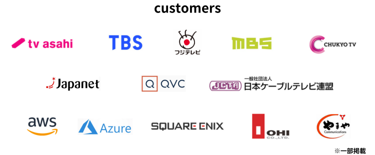 | 主要取引先 | 放送業界(地上波、BS、CS、ケーブル局)/ 広告業界 / 映像制作業界 / ゲーム業界 / 飲食業界 / スポーツ業界 / 不動産業界 / 官公庁 etc. |